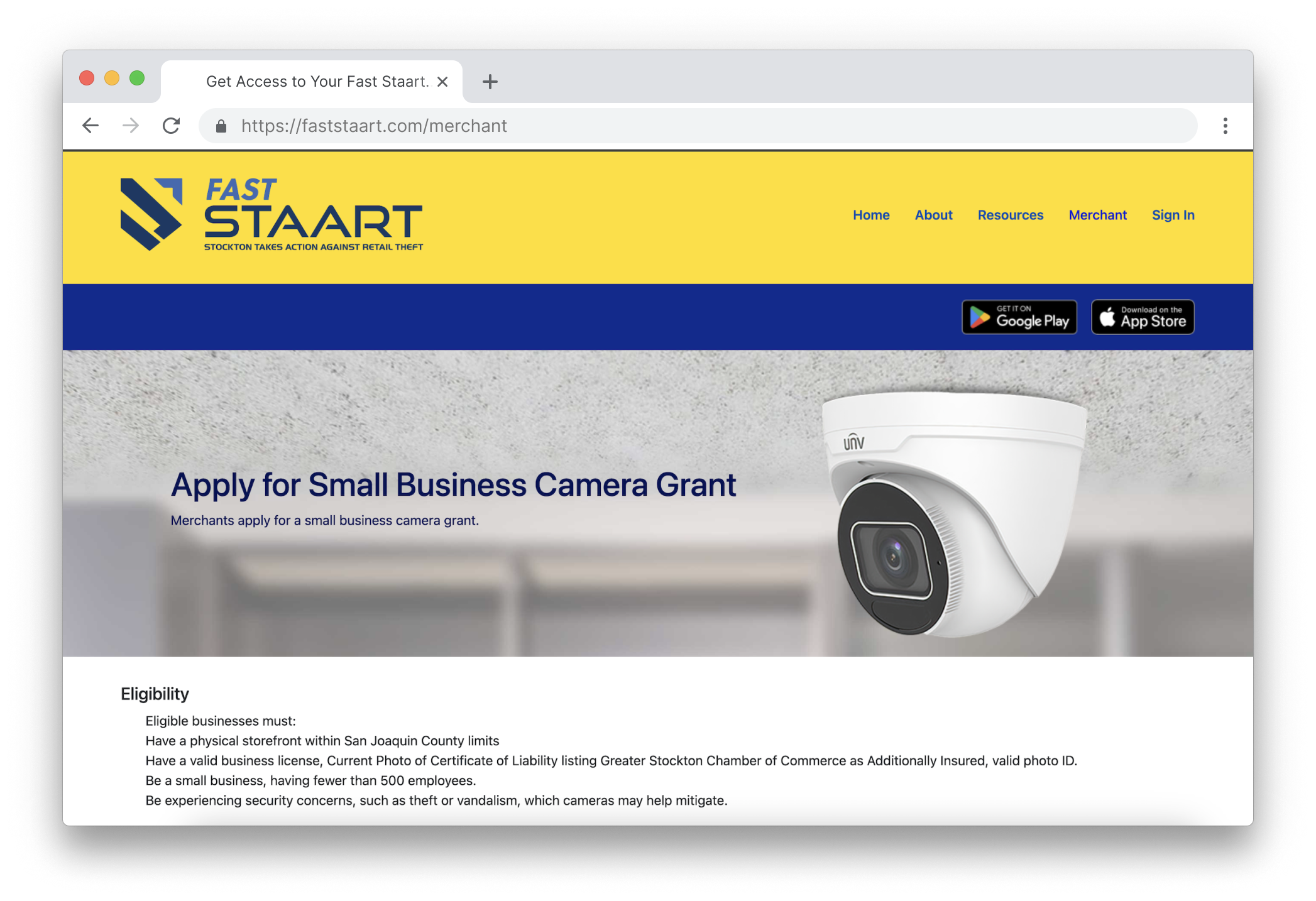 The goal of the front facing website was to encourage merchants and people to download the app. Also to provide information for merchants to sign up for the free security camera grant.